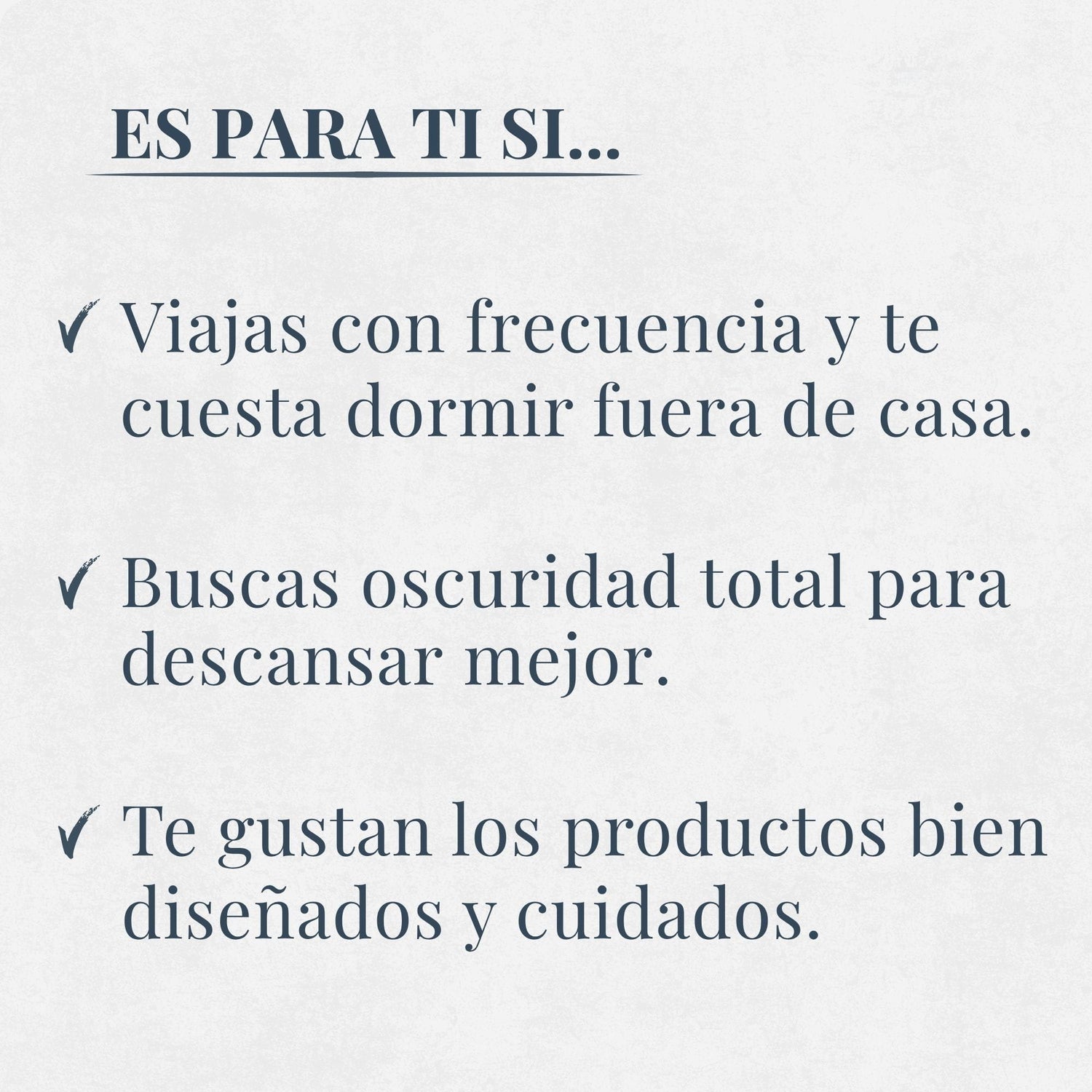 Nuestro antifaz crea un espacio personal de oscuridad y comodidad para que puedas dormir mejor en cualquier situación: en un avión, en un hotel o durante una siesta en casa.